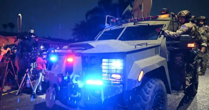 “Out of the way, sir!” someone yelled. Others yelled to duck. From one corner, a “God Bless America” chant began as the president was escorted offstage. Outside the hotel, members of the National Guard and other authorities flooded the area as helicopters circled overhead.