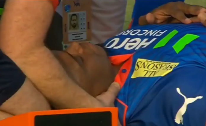 The South African had to be stretchered off the field after a delay of over 15 minutes, momentarily halting proceedings.